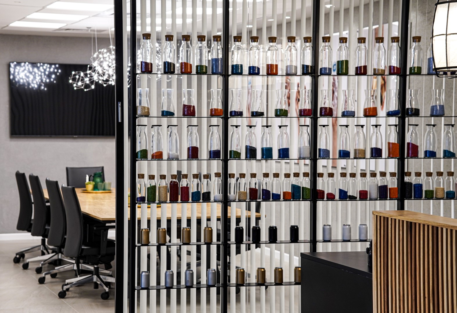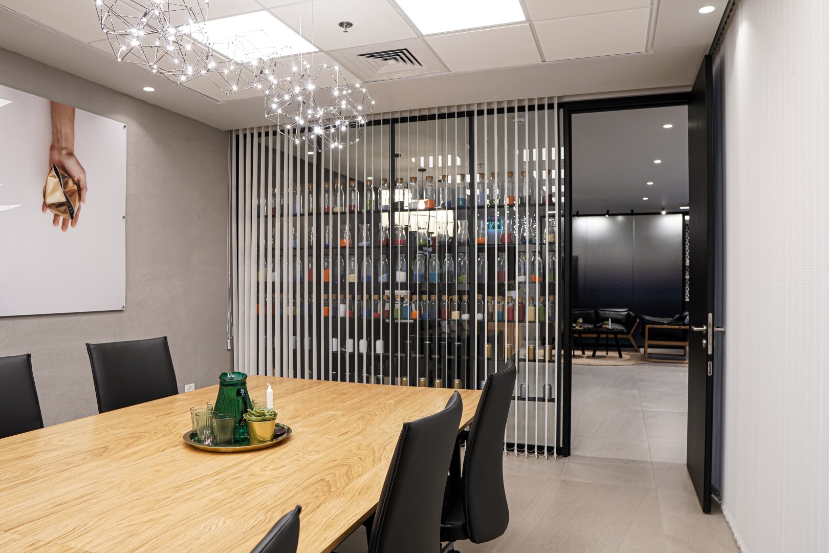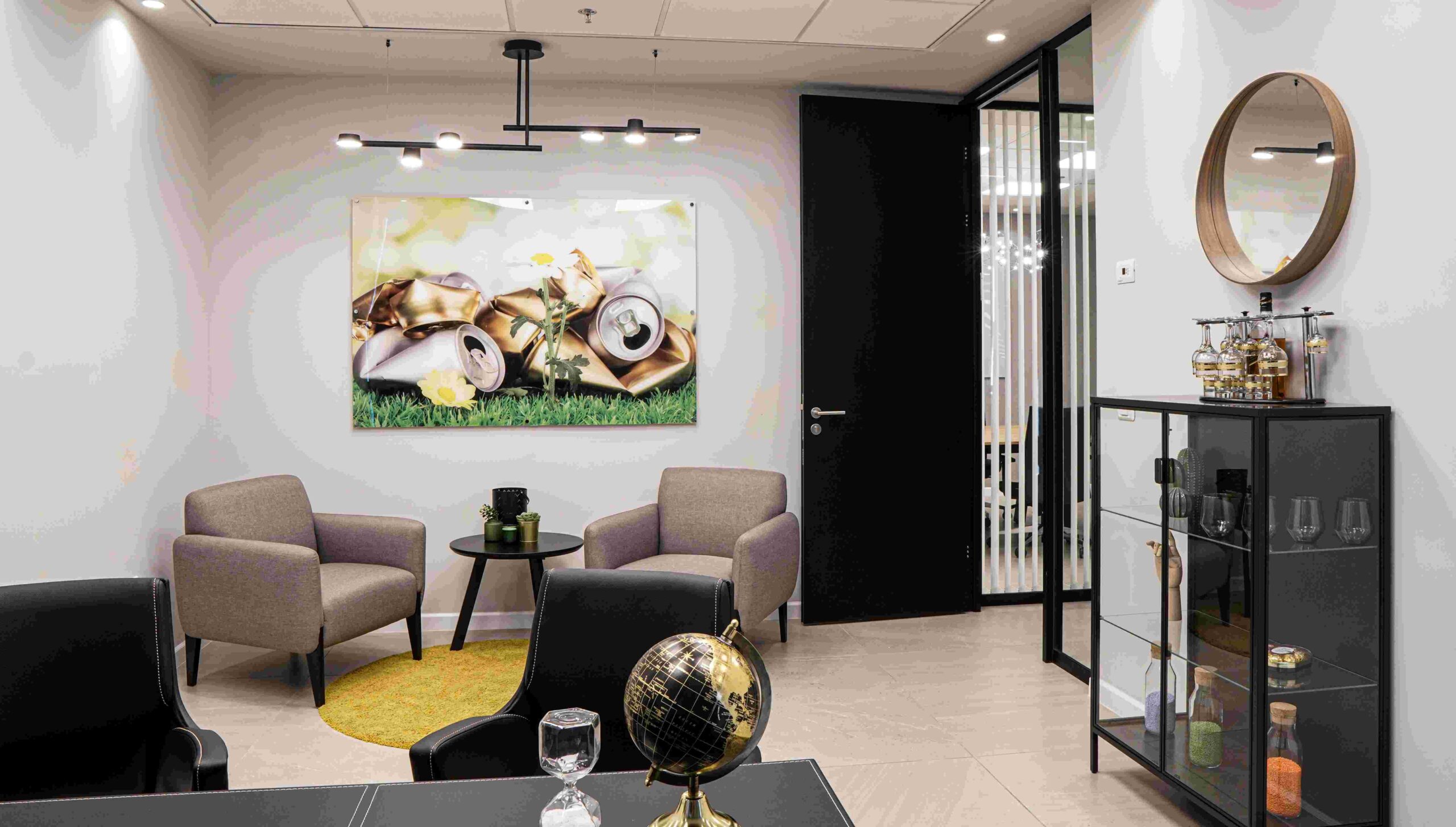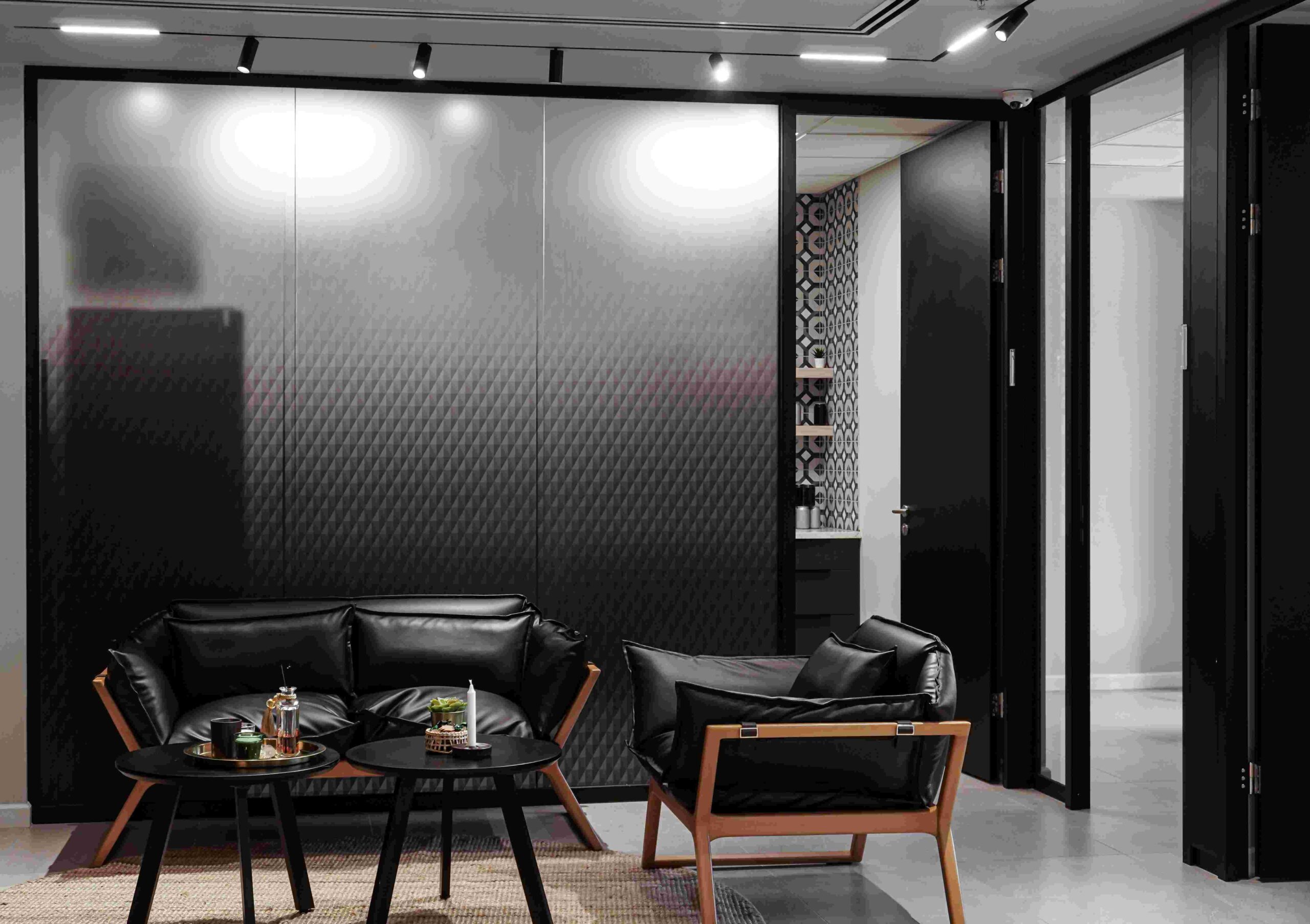 בין הריהוט הנבחר: שולחנות,דלפק כניסה , פתרונות אחסון , מטבח מעוצב וכסאות עבודה