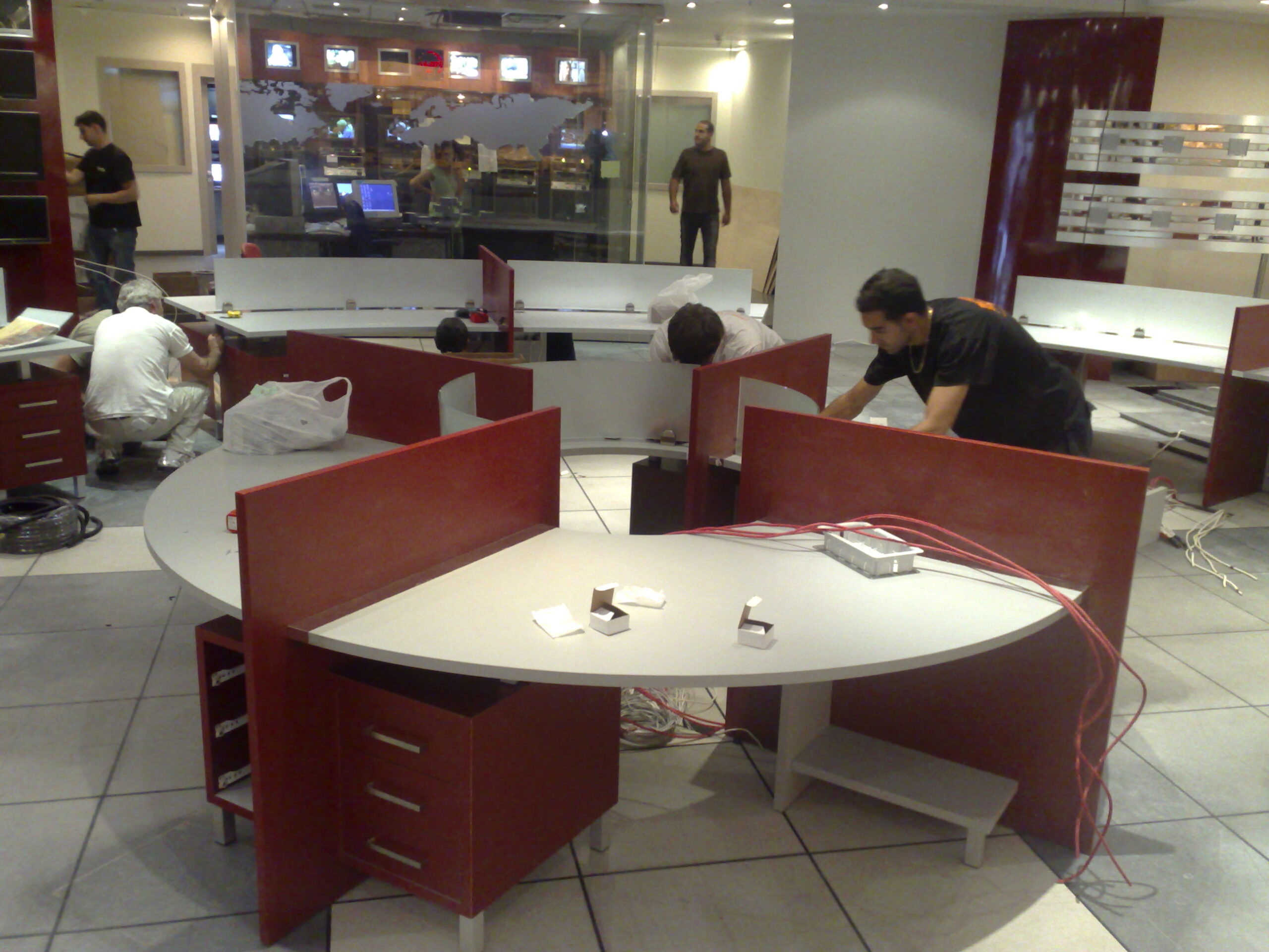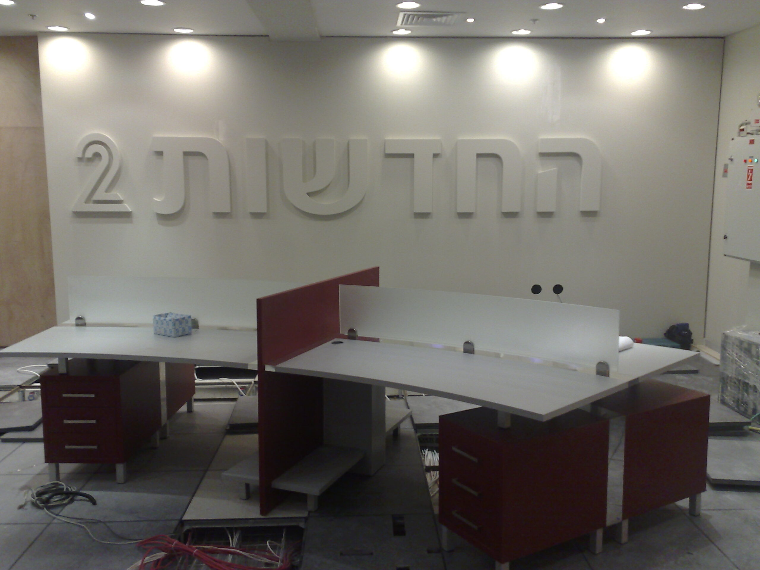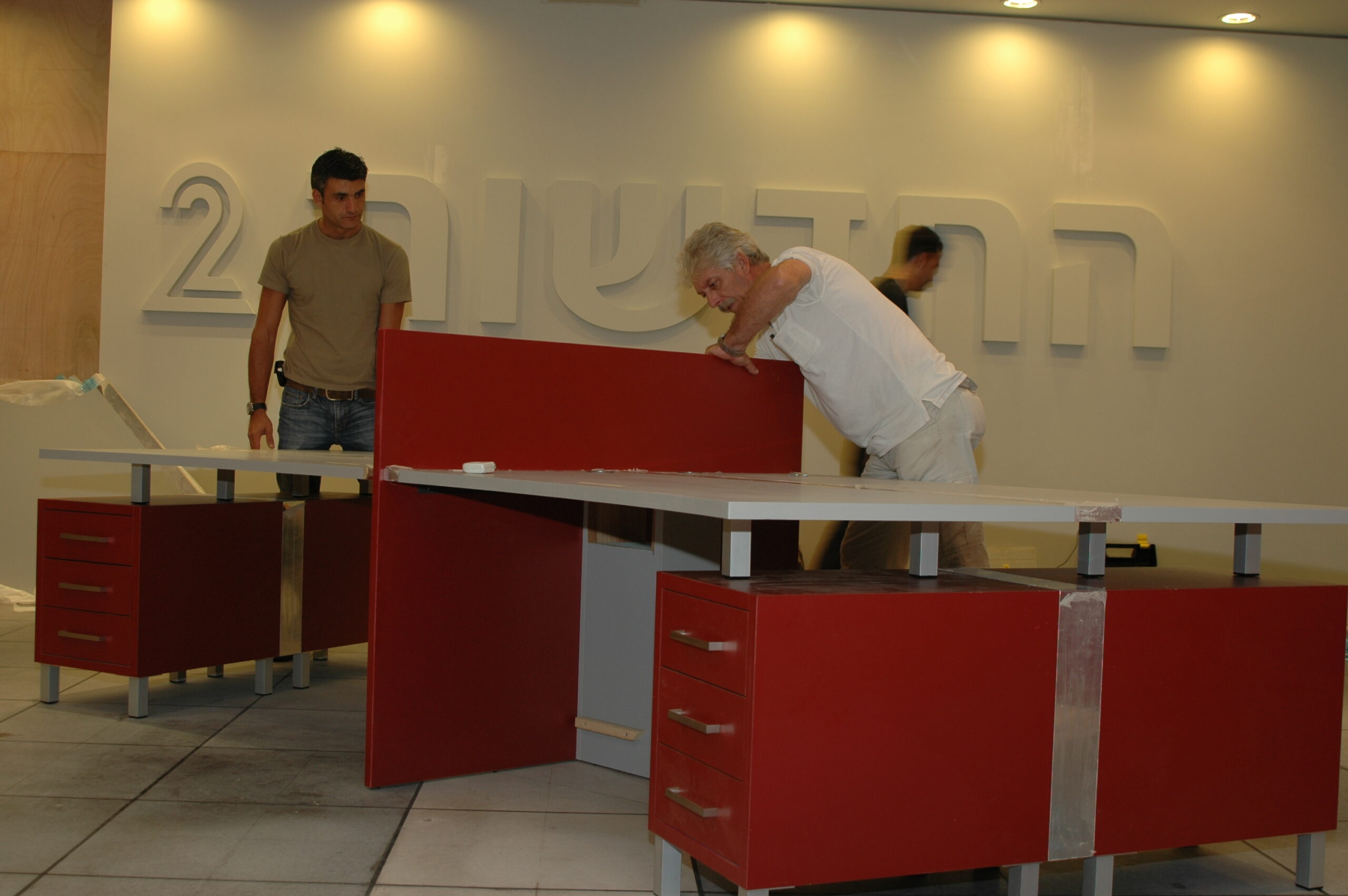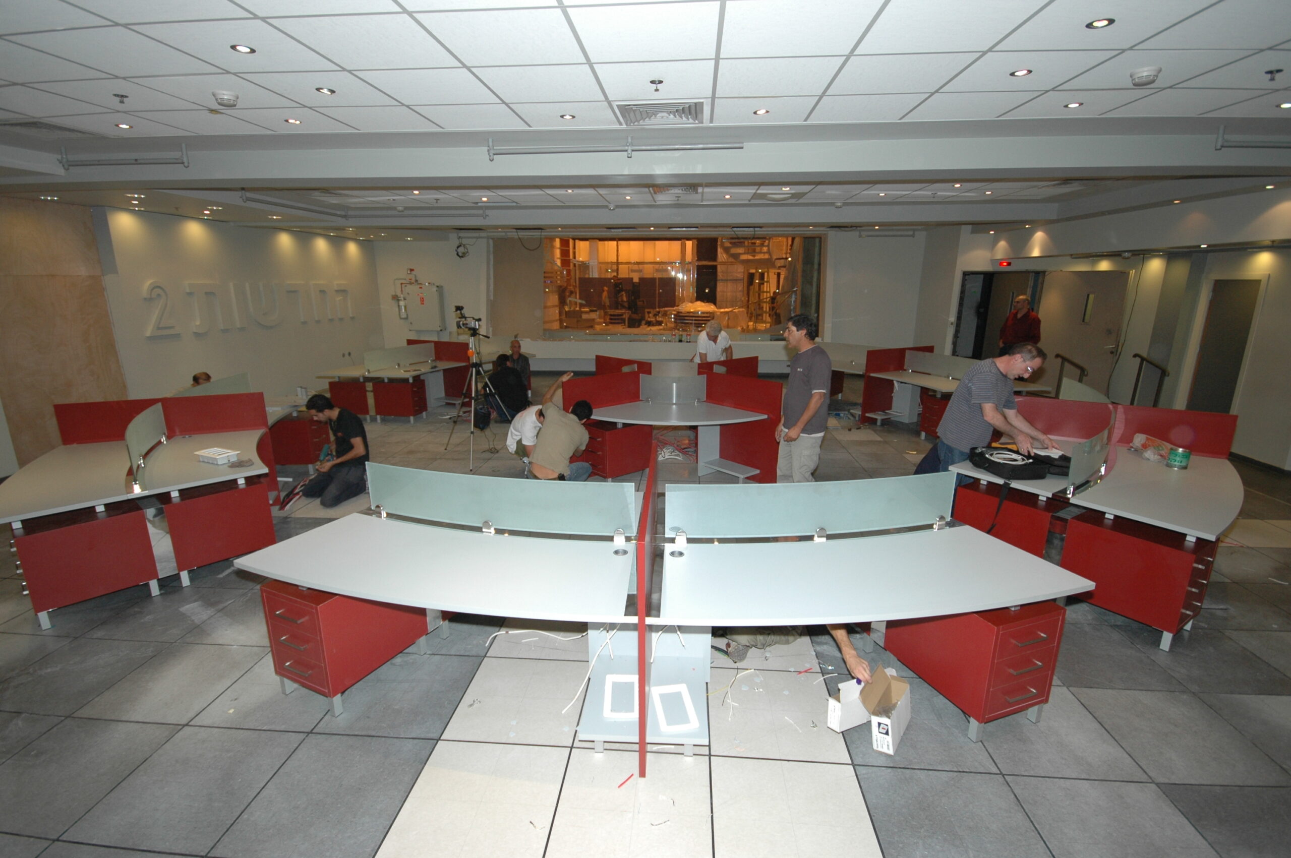נבחרנו לרהט את חדר החדשות בנוה אילן , הריהוט כלל פינת 24 עמדות כתבים עם מחיצות זכוכית וכסאות