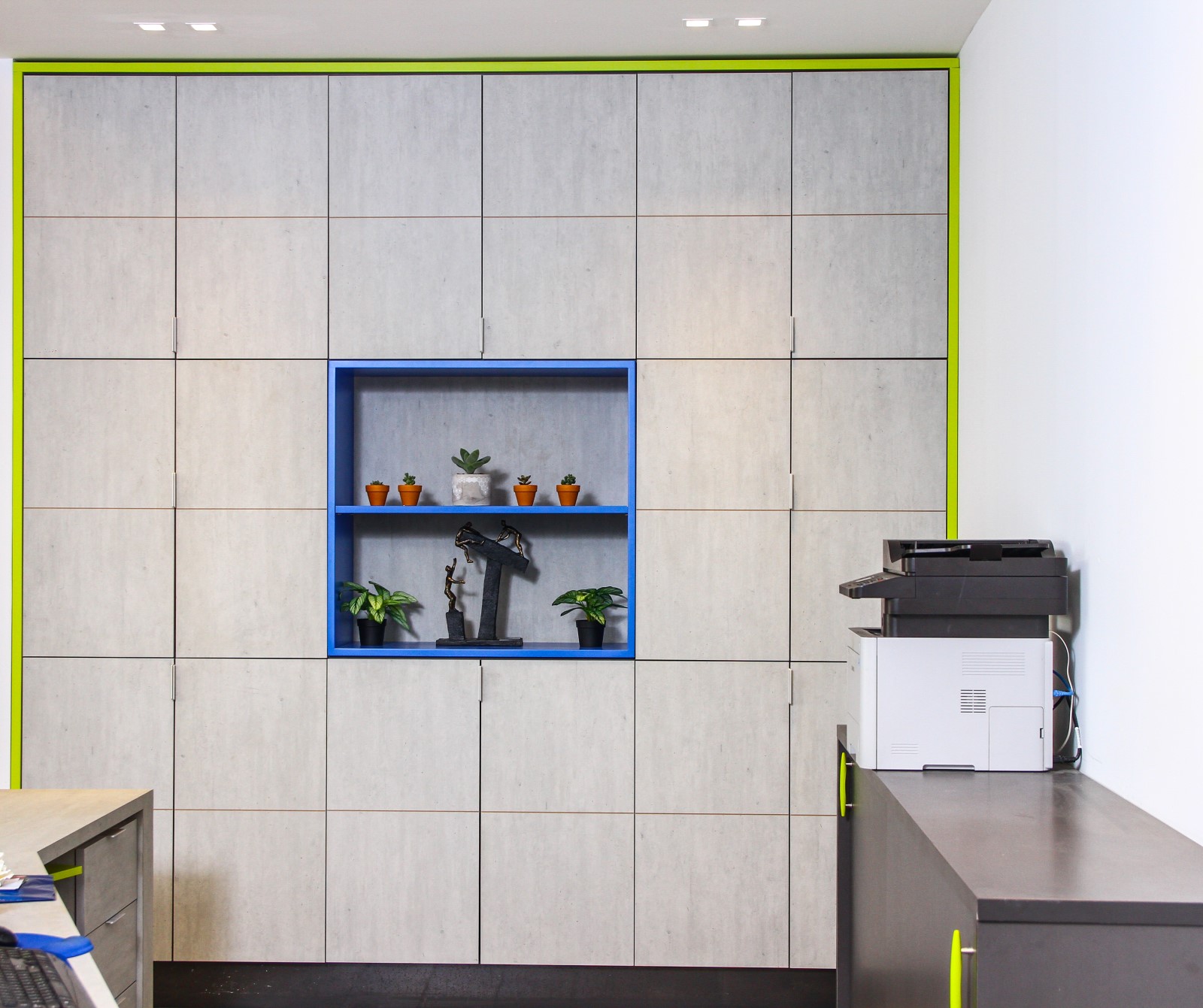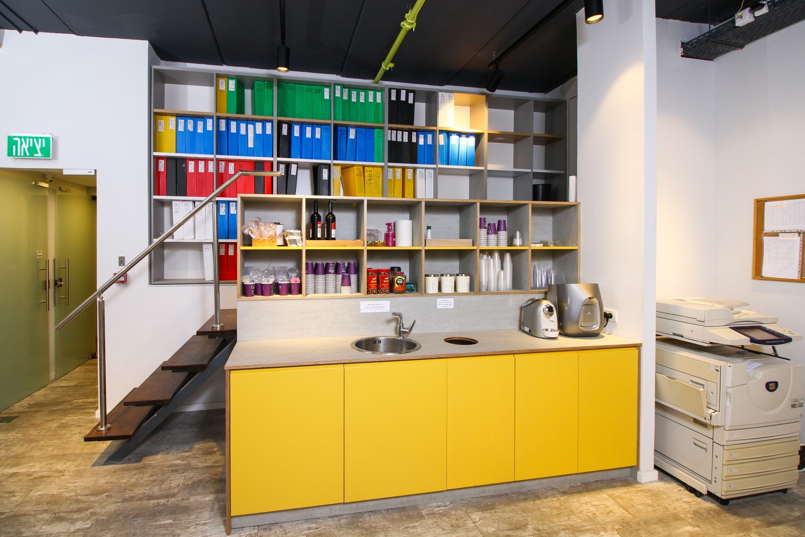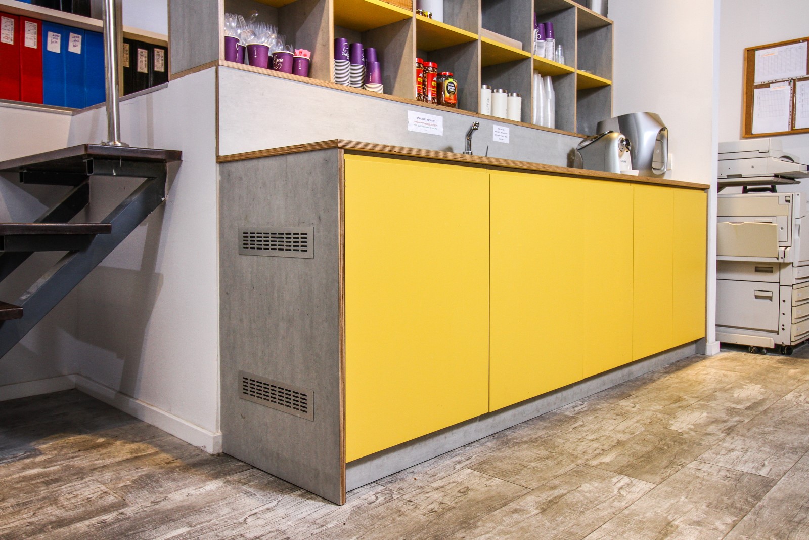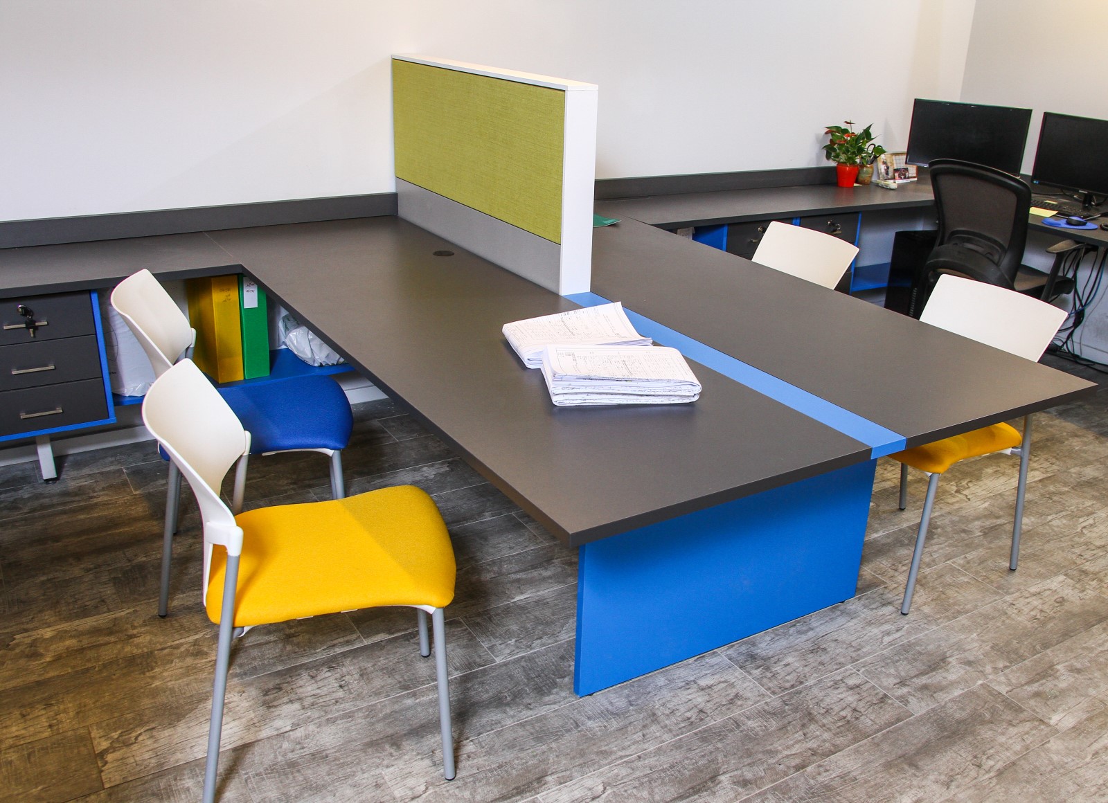 בין הריהוט הנבחר: שולחנות עבודה, מחיצות open space , פתרונות אחסון , חדרי שיבות , כסאות לחדר ישיבות ,מטבח מעוצב כסאות עובדים , כסאות אורחים ..