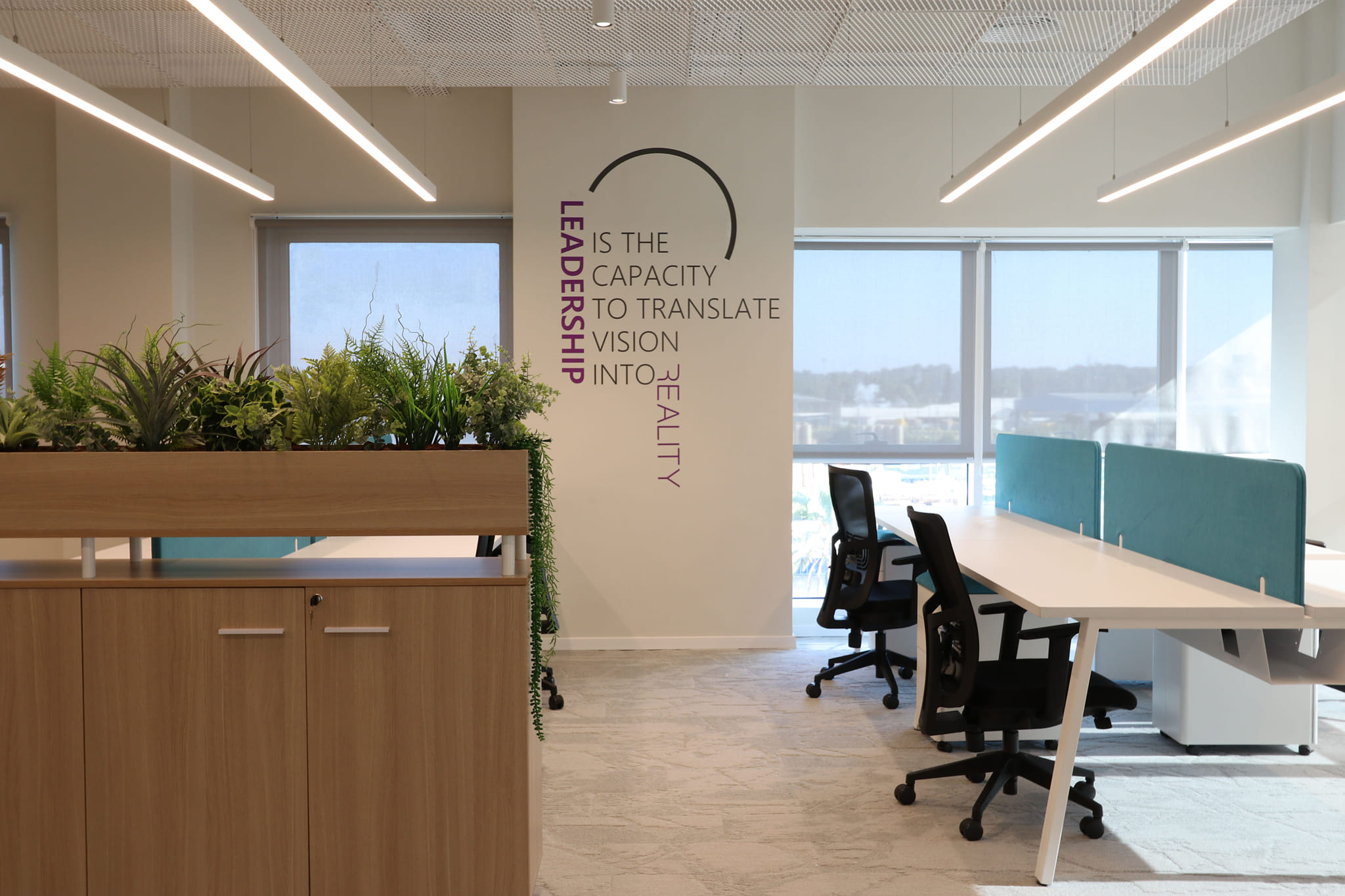 נבחרנו לרהט את המשרדים החדשים של חברת ניו ריאלטי בקיסריה בין הריהוט הנבחר: שולחנות, מחיצות, פתרונות אחסון וכסאות עובדים