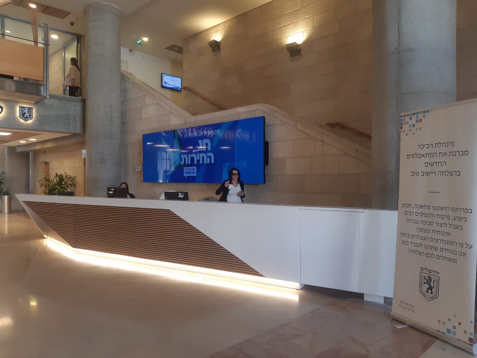 נבחרנו לרהט לובי כניסה למרכז תרבות עבור עיריית ירושלים הלובי יוצר מקוריאן משולב עץ ותאורה פנימית