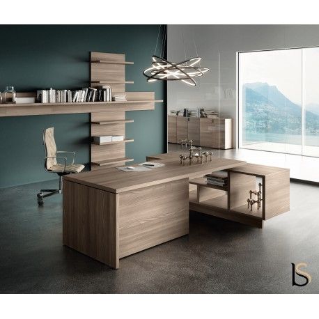 שולחן מנהל עשוי דמוי עץ מגיע עם שולחה רתומה ומגירות אכסון.