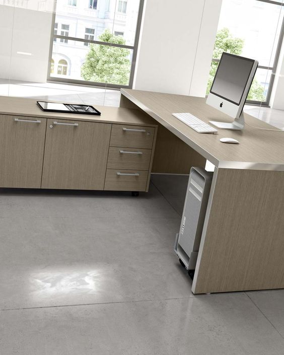 שולחן עשוי מחומר מלמלין עם שולחה רתומה תואמת ומגירות אכסון